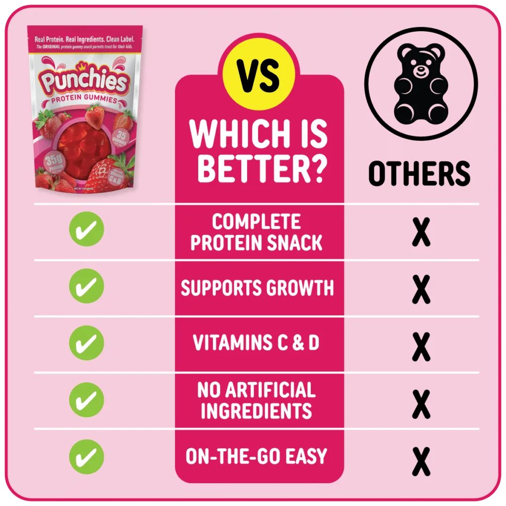 Punchies protein gummies are the cleanest, most complete, and most trusted kids protein gummies available—period.